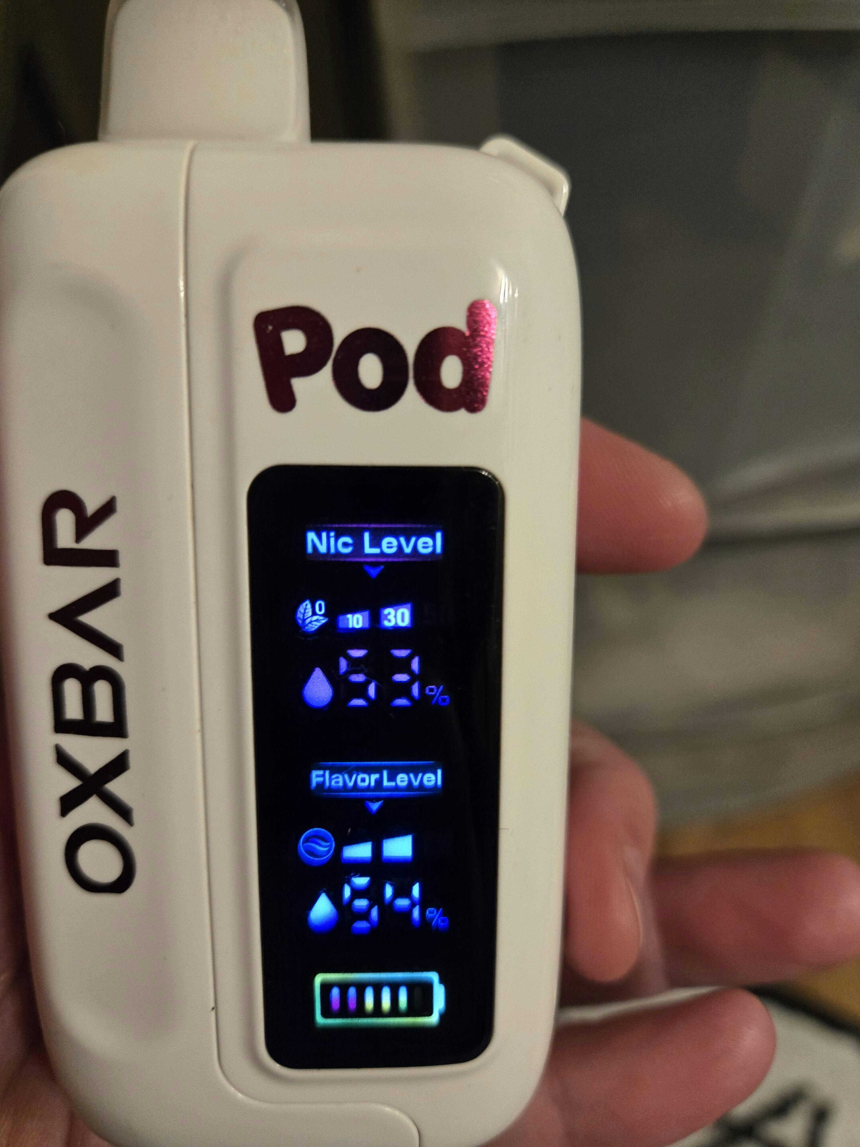 The OXBAR x Pod Juice Nic Switch 35000 Disposable is a groundbreaking disposable vape device that offers users the ability to customize both nicotine strength and flavor intensity. This world's first customizable device uses two independent mesh coils, boasts a mega display screen, allowing users to monitor battery life, e-liquid levels, nicotine percentage, and flavor settings in real-time.